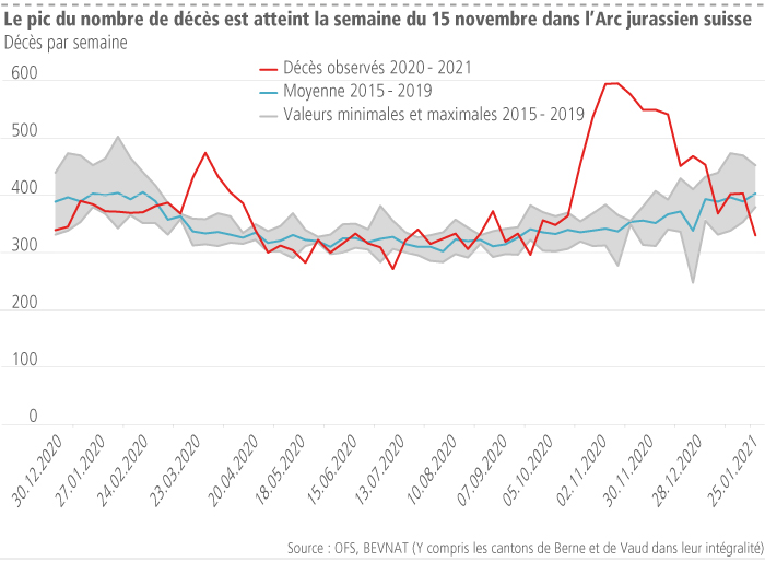 300 décès supplémentaires par semaine au plus fort de la crise dans l’Arc jurassien
